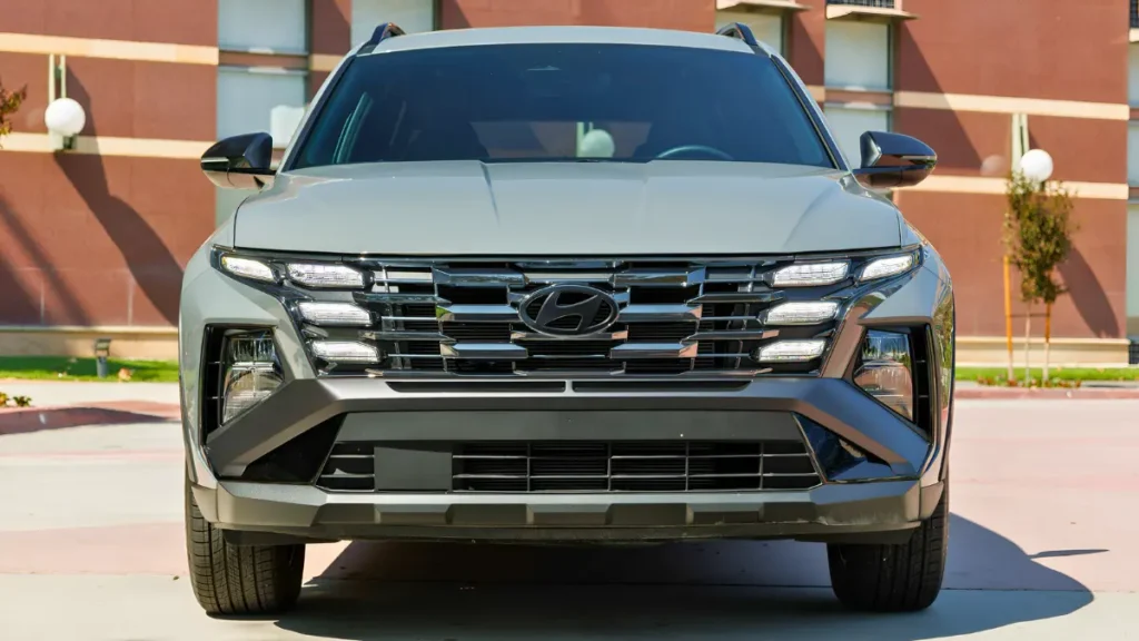 The front fascia of the 2026 Tucson immediately commands attention. Hyundai has reworked the signature grille with sharper parametric patterns that integrate seamlessly with updated LED lighting elements. The daytime running lights now appear more defined, giving the SUV a futuristic glow during night drives. A redesigned bumper with sculpted air intakes enhances aerodynamics while improving road presence. The new look feels wider and more confident, creating a premium impression even before stepping inside.